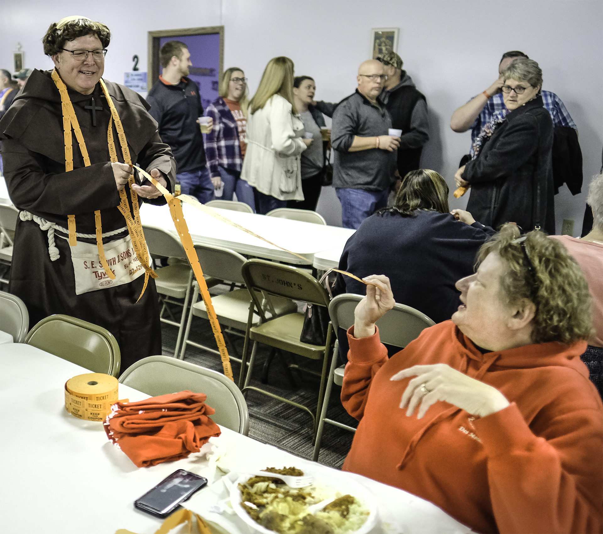 Fish Friar Mike Conrad and Sue Hershman split tickets for the split the pot drawing.