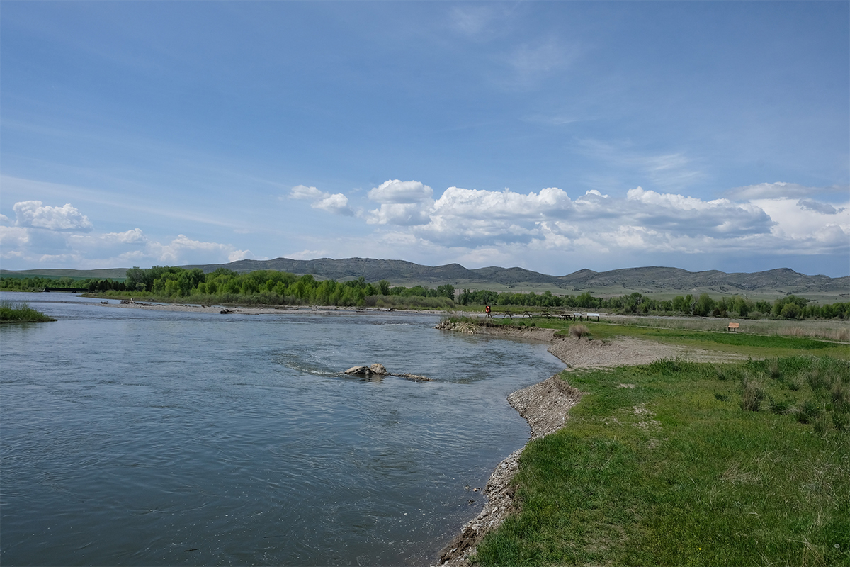 Headwaters of the Missouri River at the confluence of the Jefferson, Madison and Gallatin rivers at Missouri River Headwaters State Park in Montana.