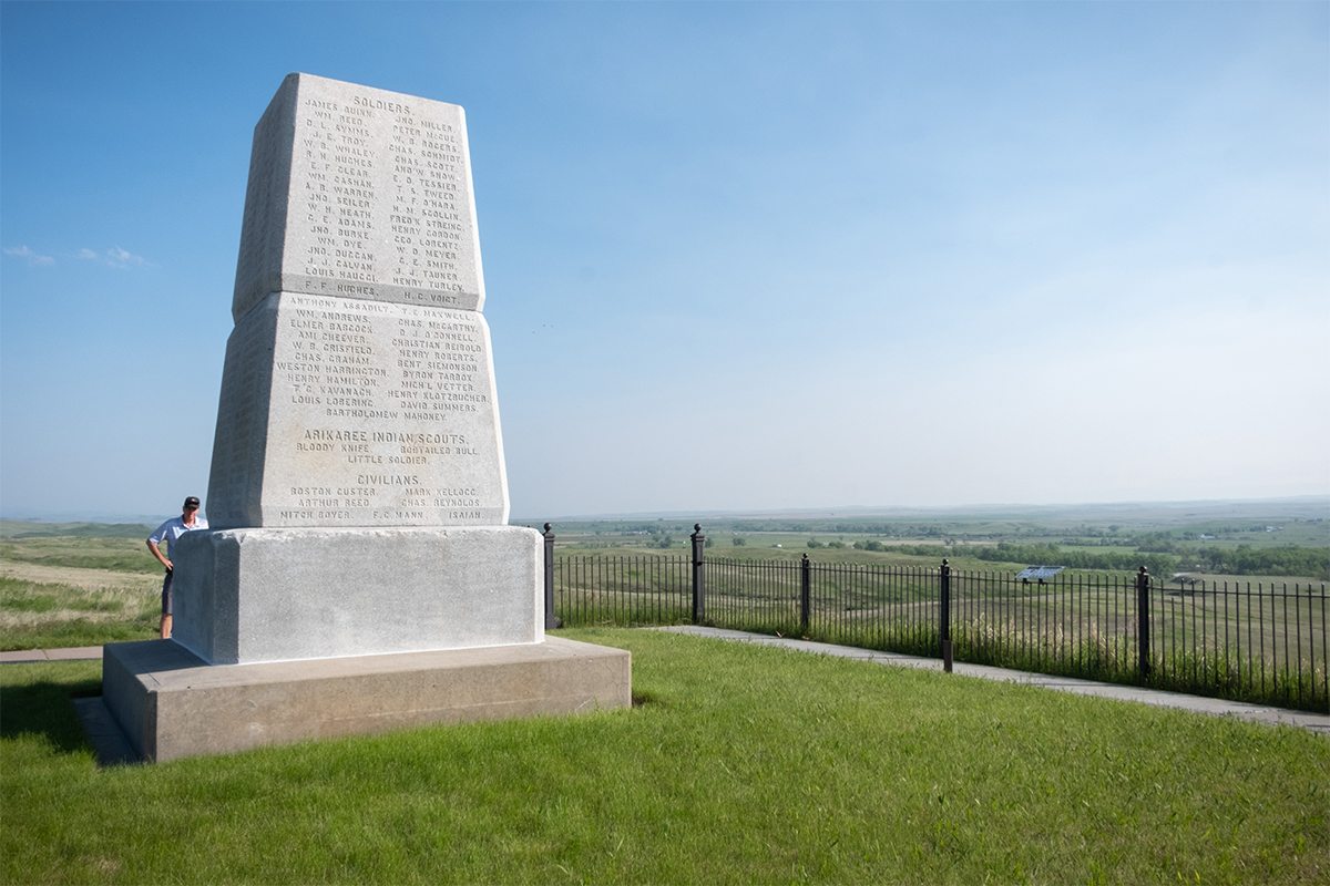 Monument listing names of soldiers, Indian scouts and civilians who died at the Battle of the Little Bighorn.