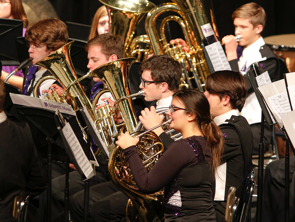 Blair High School 11-12 band performs during the winter concert in the Lela Neve Auditorium.
