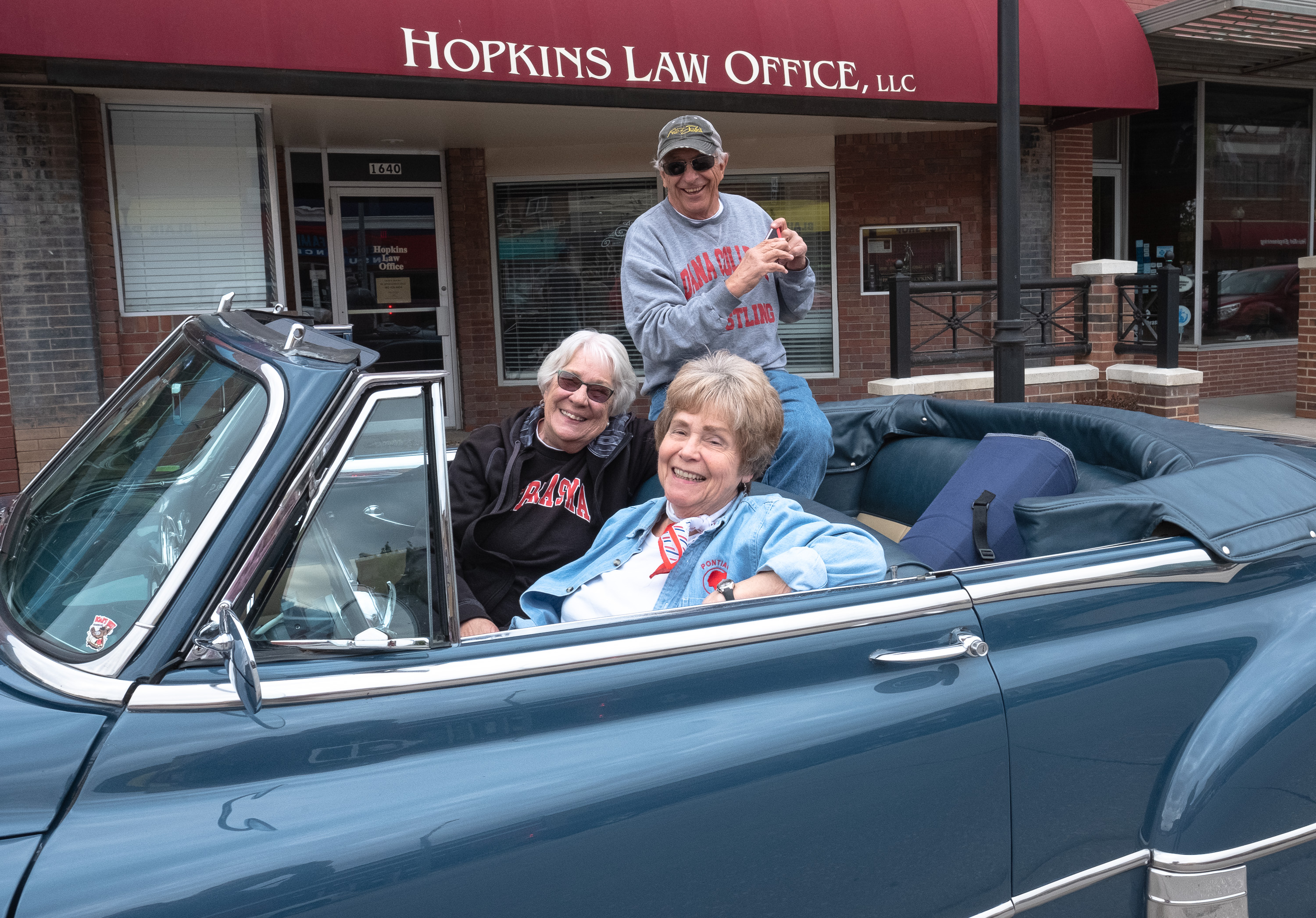 people in old convertible