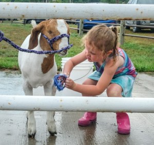 girl cleans goat