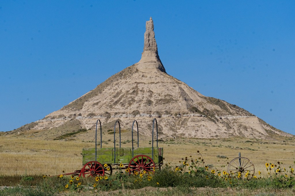 Chimney Rock near Bayard, Nebraska is the signature landmark on the Oregon Trail. The stone column rises nearly 300 feet above the North Platte river valley. The national historical site and visitors center is maintained and operated by History Nebraska. The museum inside the center has been expanded and updated. The exhibits are interesting and the staff is knowledgeable and helpful.