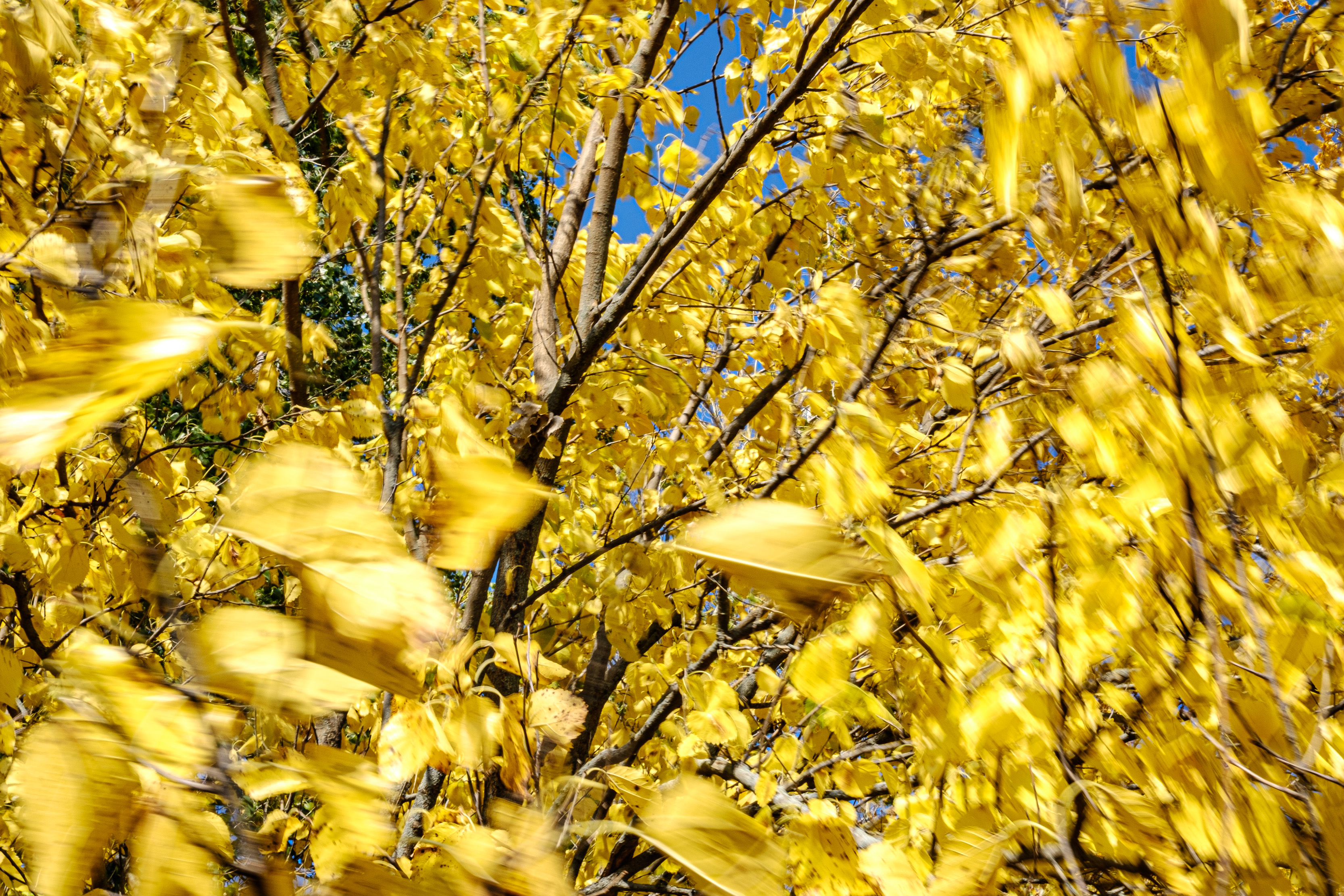 Wind blowing tree leaves.