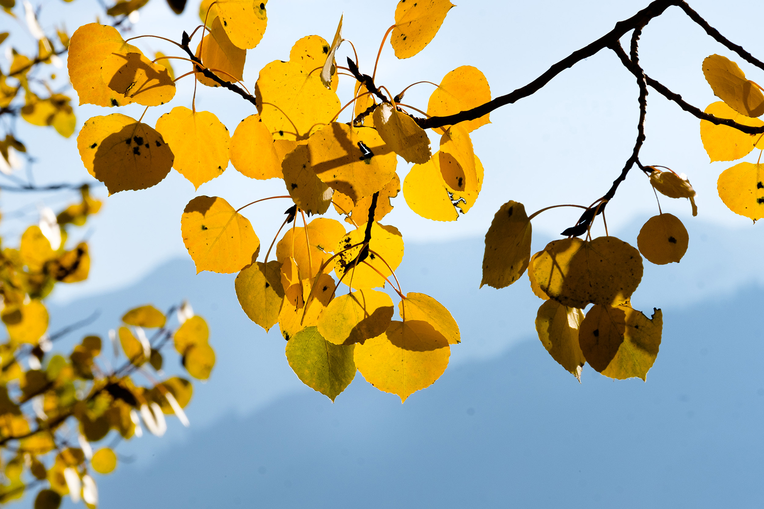 Especially the photos with the “yellow-ish” trees and the mountain peaks.