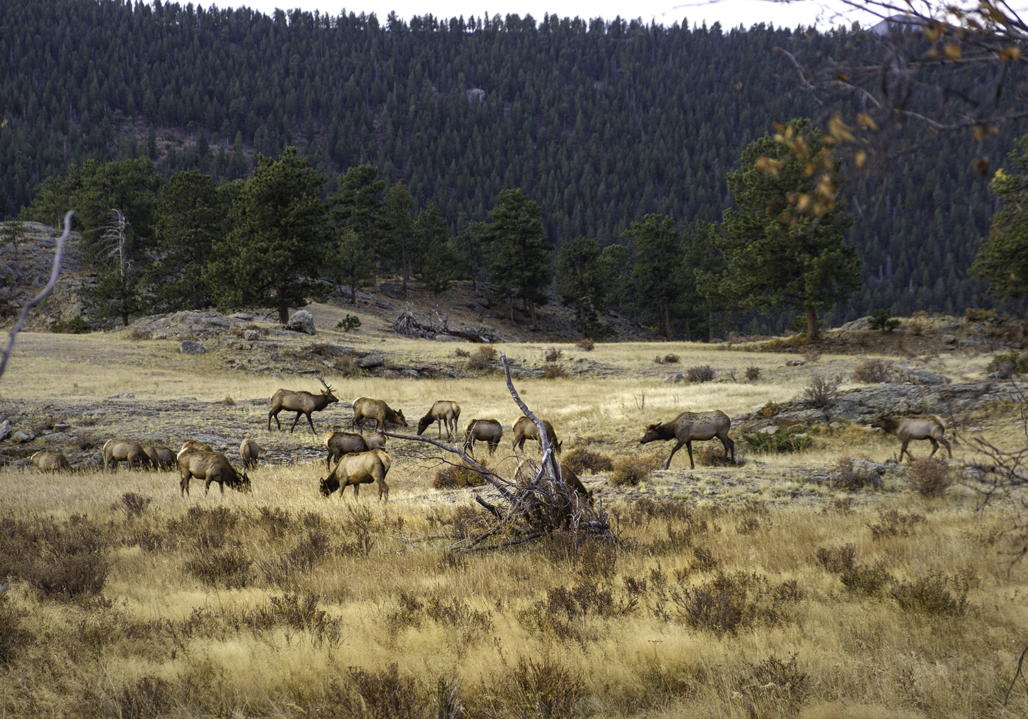 I arrived at the park bit late for optimum leaf peeping, but not too late for the elk rut or mating season. In early fall bull elks descend to the mountain meadows to gather harems and vie for the attention and affection of females in heat. I am not a particularly knowledgeable wildlife photographer, but I do love spectacle, and the annual elk rut is definitely a spectacle.