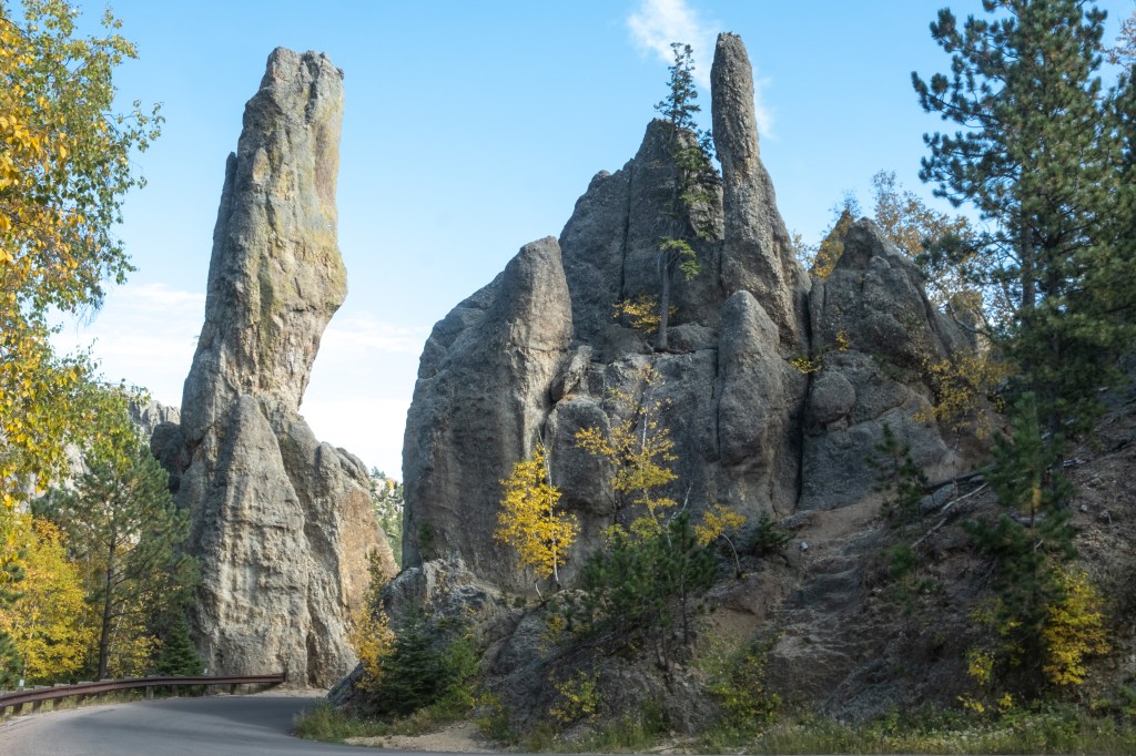 Above left: Eye of the Needle Tunnel in Custer State Park. Middle and left: Autumn color in Spearfish Canyon.