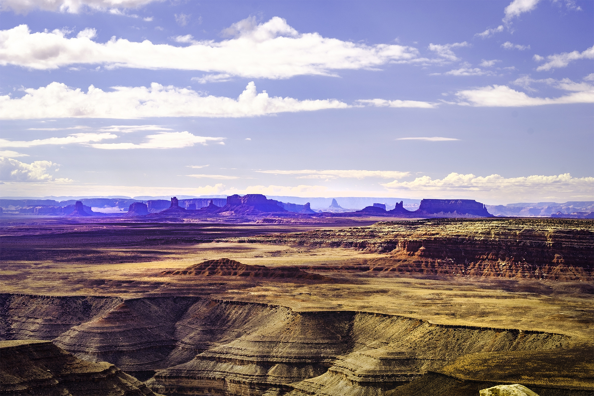 Muley Point overlooking the San Juan River Goosenecks with Monument Valley in the background.